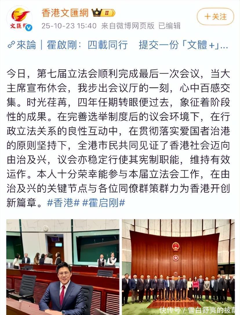其实这都是表面上外人看见的,冷暖自知过得幸不幸福也只有本人才知道,霍先生从不向表面上那样只专注于家里的事业。两人是互相的成就对方,10月23日的时候,霍先生现身第七届立法会的最后一次会议。