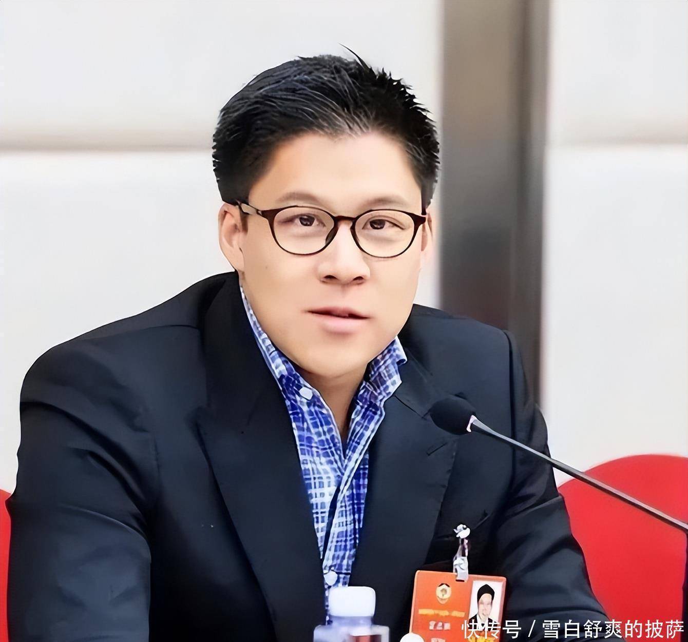 当天霍先生穿了一身深蓝色的西装,里面是白色的衬衫打底,领子处还系了一条红色的领带。他坐在会议室的椅子上面向镜头微笑,后面还和大家一起合照,截止到当天他已经在里面任期4年了。